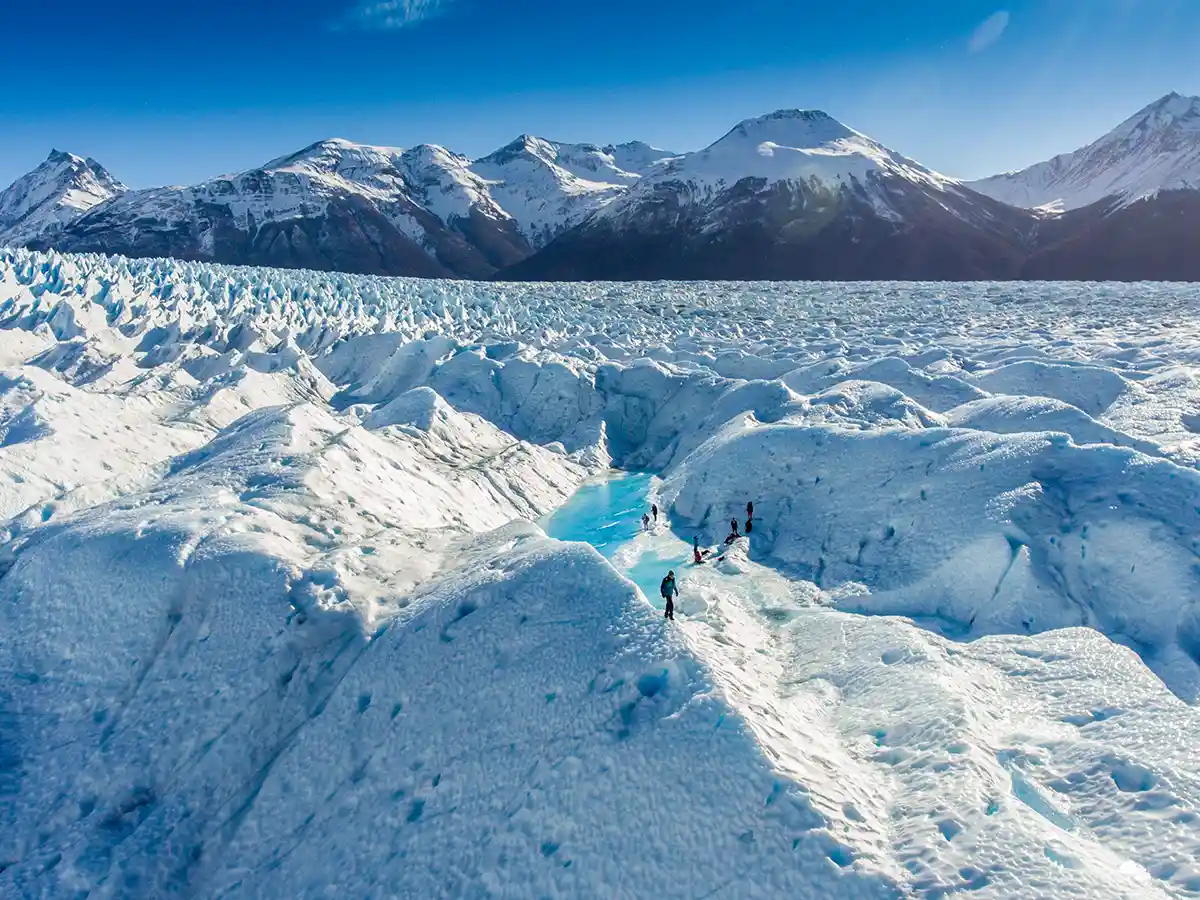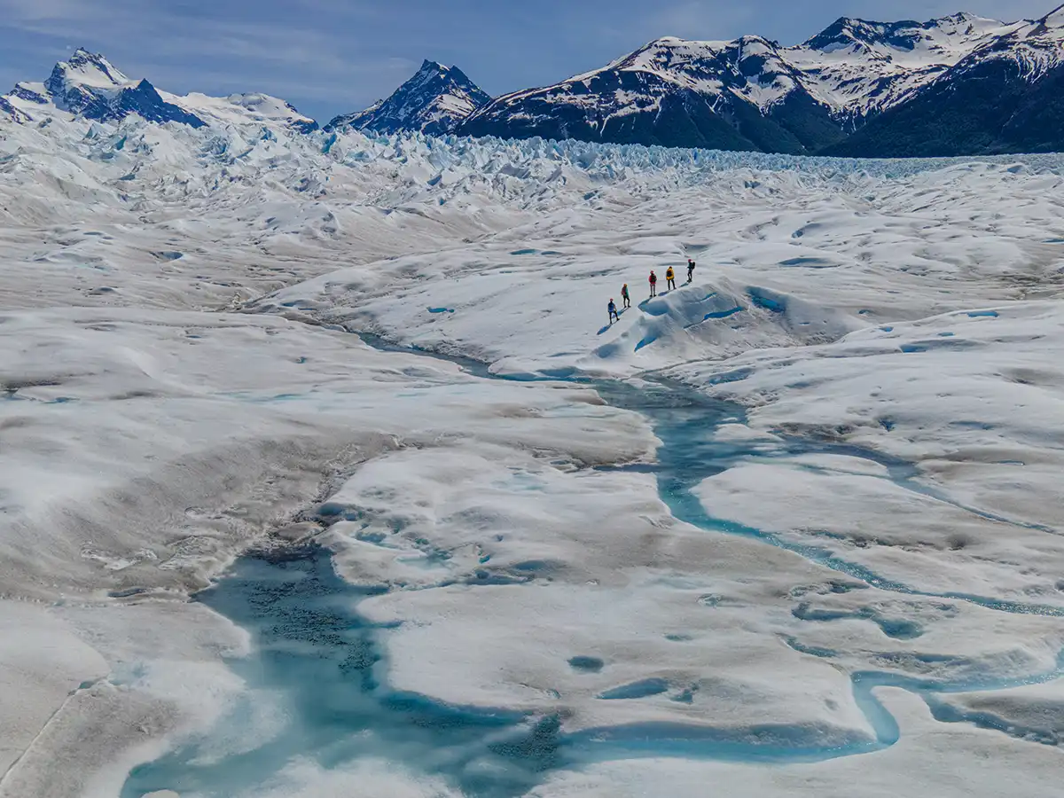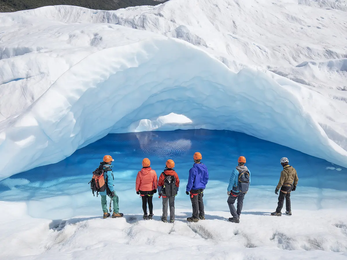 Equipado con grampones, adéntrate en el ecosistema del glaciar. Disfruta de un trekking de 4 horas sobre el hielo, explorando lagunas azules, grietas profundas y fascinantes cuevas de hielo. Experimenta la sensación de estar en el centro de este paisaje único.