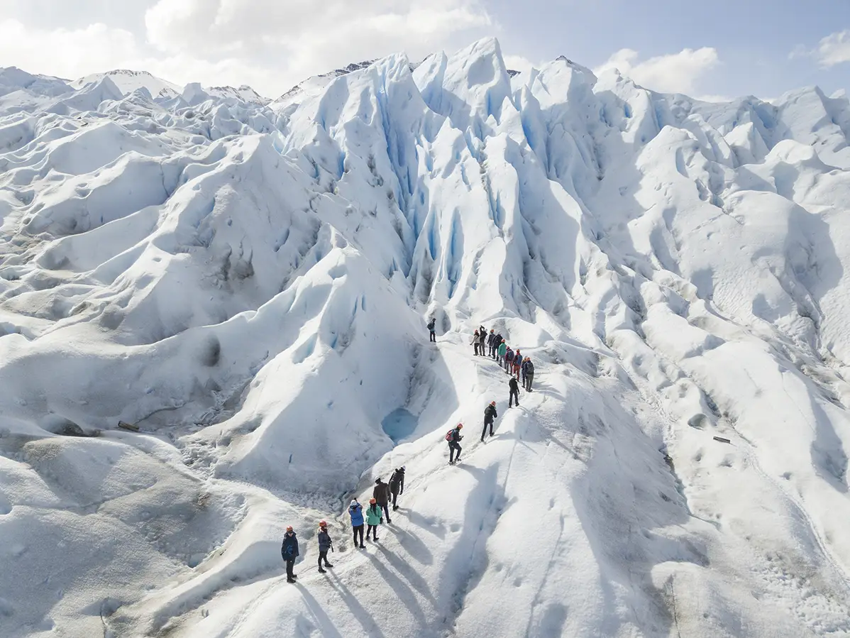 Equipados con grampones, cascos y bastones, comenzaremos el minitrekking sobre el glaciar, explorando formaciones de hielo únicas como profundas grietas, sumideros azules, seracs imponentes, lagunas y formaciones. Aunque el circuito presenta un nivel de dificultad medio, la superficie del hielo es firme y segura, permitiéndote disfrutar al máximo de esta experiencia única.