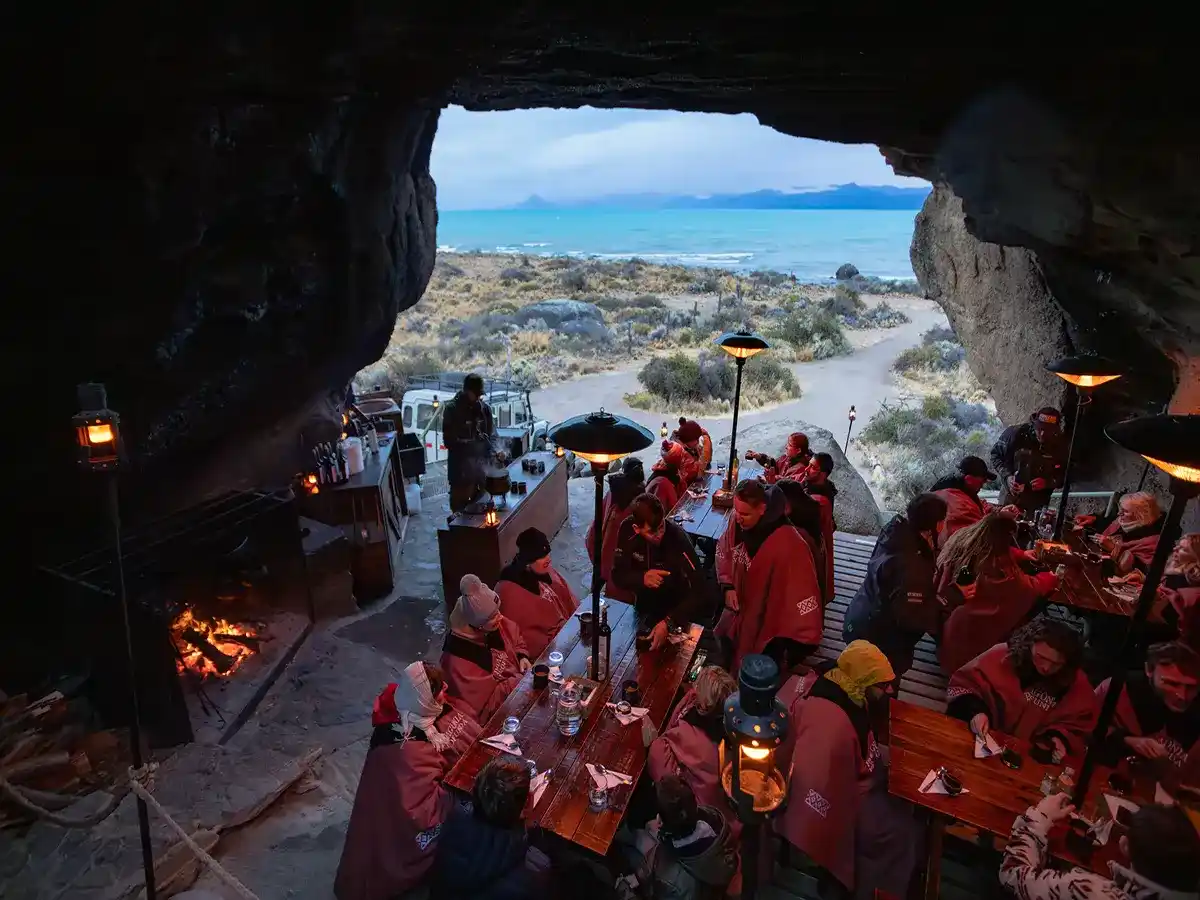El broche de oro es la gastronomía: disfrutaremos de una auténtica cena patagónica servida dentro de la cueva, acompañada de buen vino y con el sonido de la naturaleza como único testigo.