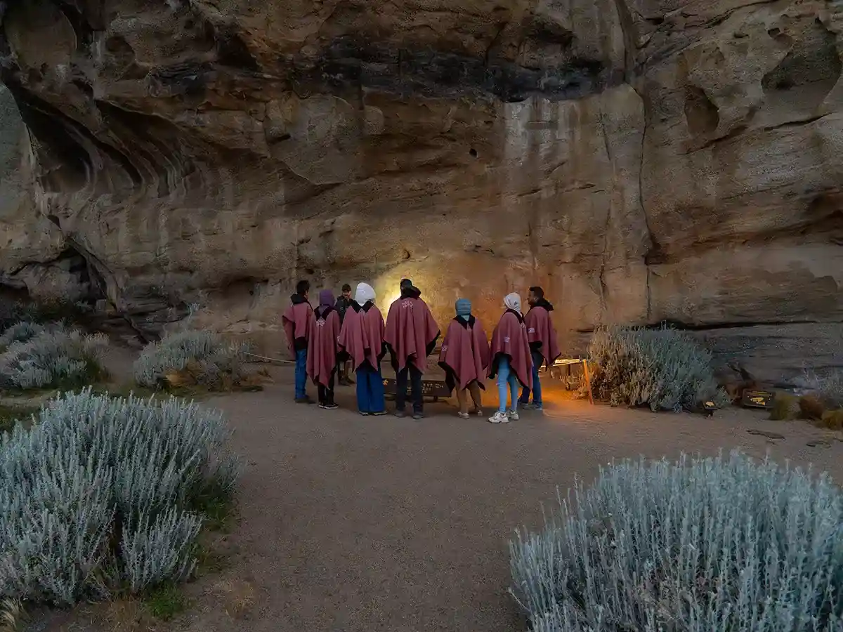 La experiencia culmina con una cena única en las cuevas de Walichu, sumergiéndote en un entorno ancestral. Acompañado por uno de los diez mejores cielos estrellados del mundo, disfruta de un menú que combina los sabores locales con la magia de la Patagonia.