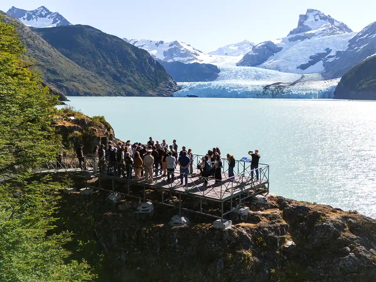 El recorrido incluye: Primero, el catamarán se aproxima hasta unos 500 metros del frente del glaciar, permitiéndote apreciar la magnitud completa de sus paredes verticales. Luego desembarcás en Bahía Spegazzini donde comienza un sendero de 600 metros con pasarelas de madera que serpentea entre lengas y ñires centenarios. El sendero tiene dificultad baja y está equipado con barandas de seguridad, haciéndolo accesible para todas las edades.